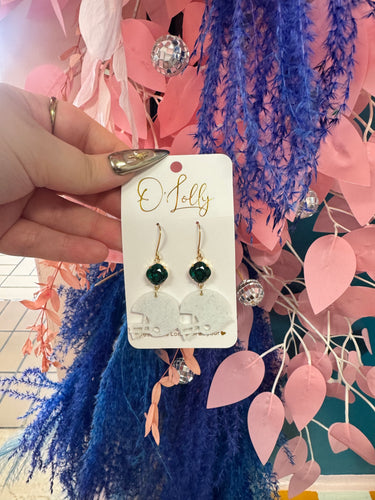 White and Green Football Earrings